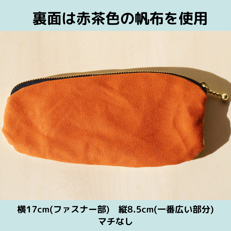 サイズ:横17cm(ファスナー部)、縦8.5cm(一番広い部分)、マチなし